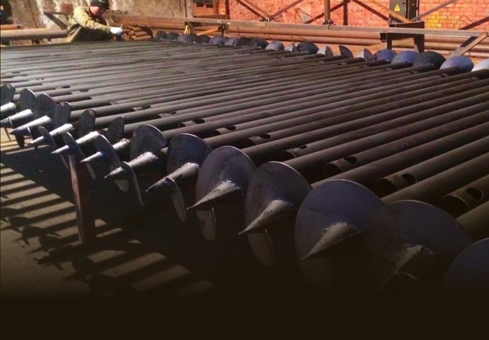 2. Установка винтовых свай: специальное оборудование используется для вкручивания свай в грунт до достижения требуемой глубины.
